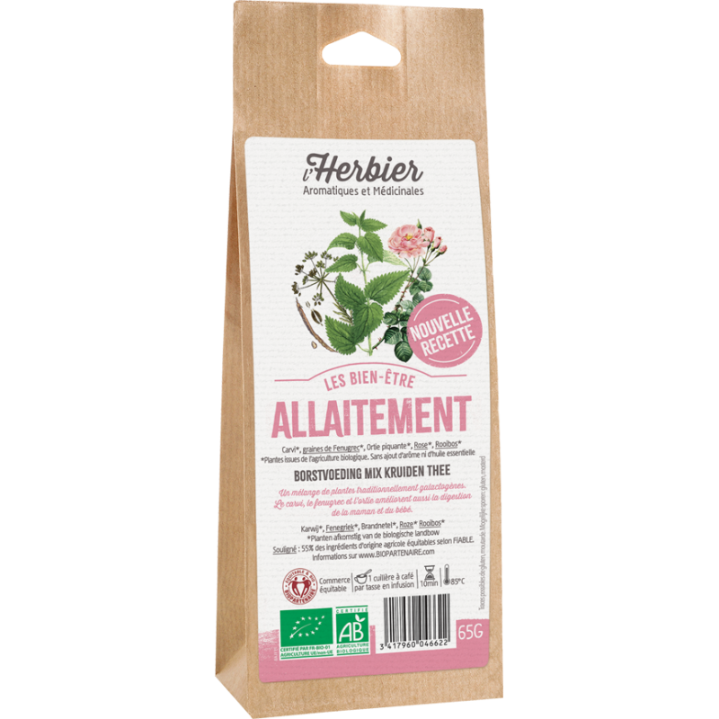 Composition : carvi (graines) *, fenugrec (graines) * **, ortie piquante (feuilles)*, rose de Damas (fleurs)* **, rooibos* **