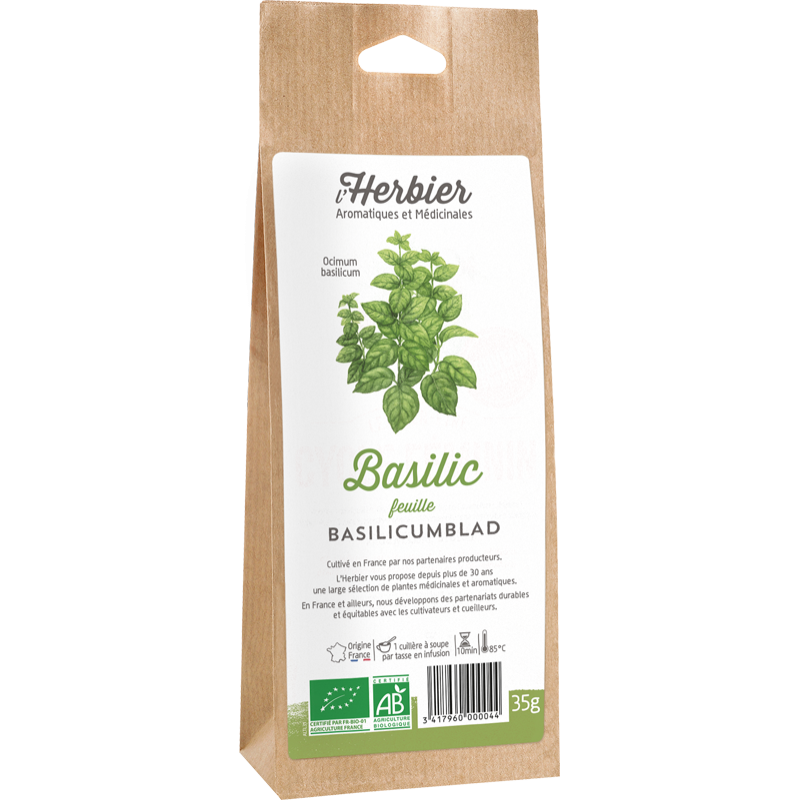 Composition : feuilles de basilic*. * : produit issu de l'agriculture biologique certifiée par FR-BIO-01.
