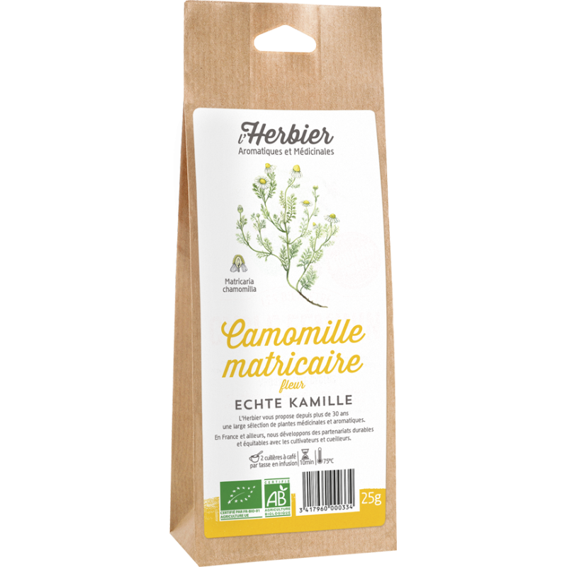 Composition : camomille matricaire* * : produit issu de l’agriculture biologique certifiée par FR-BIO-01.