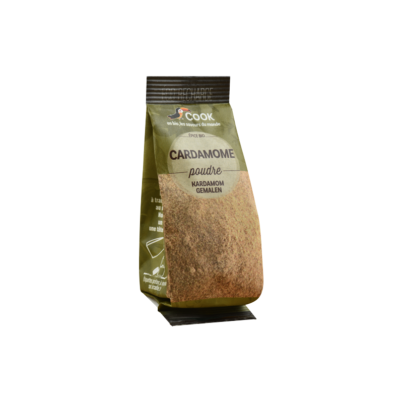 La cardamome moulue se saupoudre directement dans vos préparations. Issue de la tradition indienne, la reine des épices donnera à vos pâtisseries, boissons et à vos plats des saveurs évoquant le citron et l'eucalyptus.
