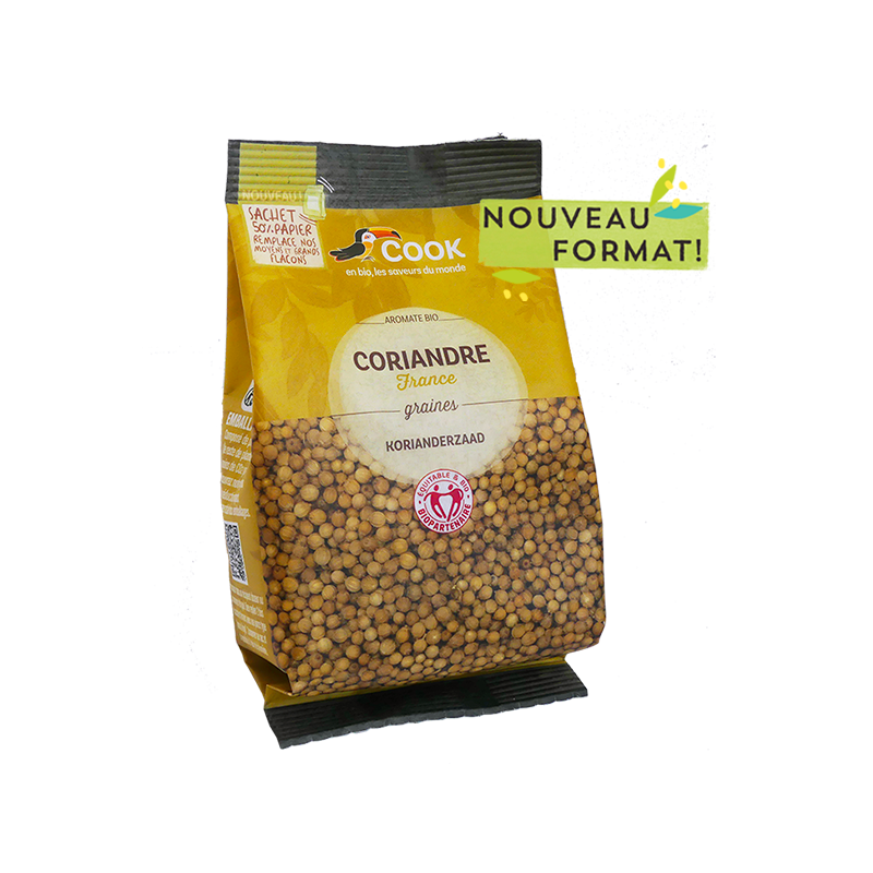 Le coriandre est une plante herbacée annuelle. Elle produit des feuilles (que l’on consomme également) vertes glabres au bout de tiges élancées. Ses fleurs sont blanches et produisent des fruits contenant deux graines. La coriandre est cultivée sur des zones tempérées à travers le monde entier.Notre filière plantes de garrigues se situe dans le Sud de France. C’est un partenariat depuis 2010, labellisé Biopartenaire (commerce équitable) depuis 2017. C’est une filière dont nous sommes particulièrement fières car nous avons fortement contribué à la monter, et ce afin de relocaliser un savoir-faire.