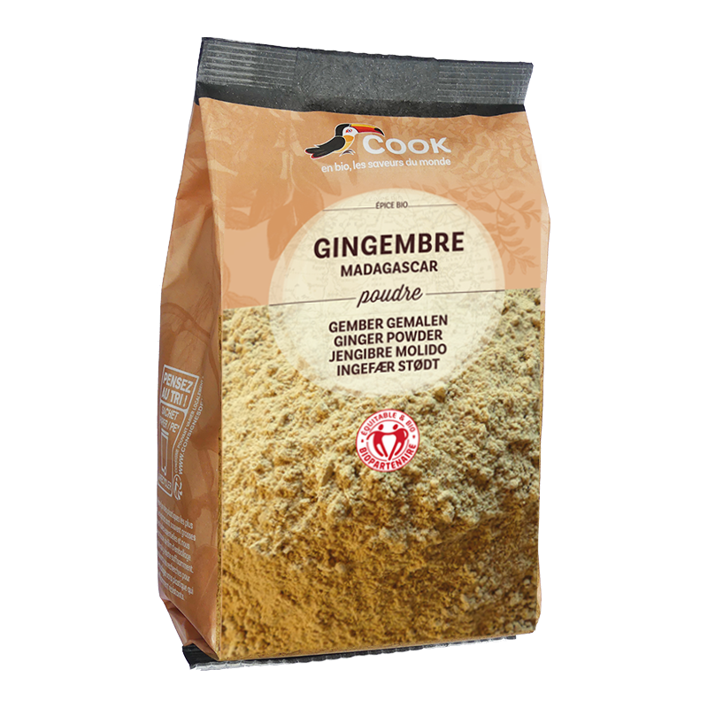 Le gingembre moulu développe des notes plus chaudes et moins citronnées que le gingembre frais. Il s'utilise dans vos salades et coleslaw, mais aussi avec quelques fruits en confiture ou en pudding (mangue, rhubarbe, poire). Il est aussi largement consommé avec du poisson et du porc, et est à découvrir en gâteaux. C’est l’épice idéale pour commencer à se familiariser avec des saveurs exotiques. En effet, le gingembre ne s’utilise pas uniquement dans la cuisine asiatique. C’est une épice qui est à la base de bien des mélanges du monde entier. Osez-la donc dans différents types de cuisine pour la redécouvrir à chaque fois !
