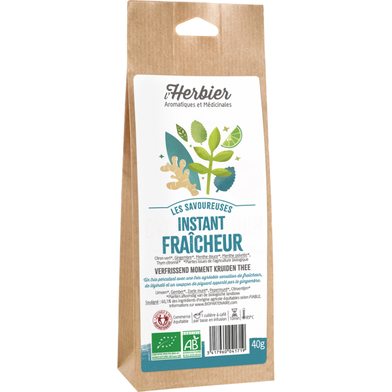 Composition : citron vert*, gingembre* **, menthe douce* **, menthe poivrée* **, thym citronné*.