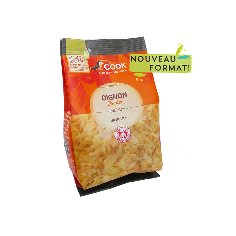 Des oignons en lanières déshydratés pour conserver le goût de ce condiment sans vous piquer les yeux en le coupant.