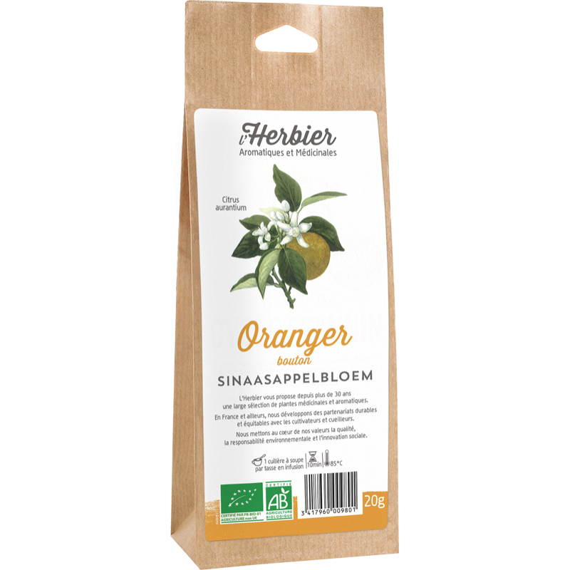 Composition : boutons floraux d'Oranger amer* (Citrus aurantium) * : produit issu de l’agriculture biologique certifiée par FR-BIO-01.