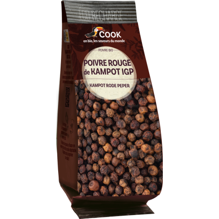 Le poivre rouge de Kampot est issu du “Piper Nigrum” ou “poivrier noir”. C’est une liane qui donne tous les poivres que nous connaissons. Elle pousse dans les climats tropicaux et donne des baies que nous cueillons puis séchons afin d’obtenir des poivres. Le poivre rouge de Kampot est la baie cueillie à pleine maturité puis séchée au soleil. La baie a donc eu le temps de développer toutes ses saveurs afin de donner le meilleur. A cela s’ajoute le terroir particulier de la région de Kampot. C’est cela qui fait de ce poivre une épice d'exception si prisée des chefs.