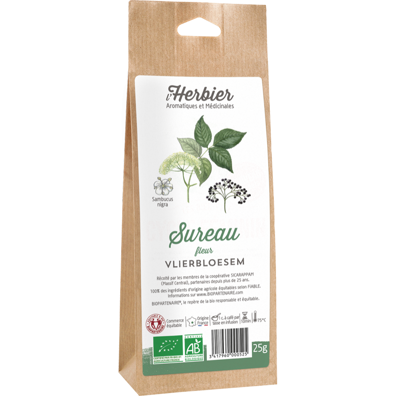 Composition : Sureau*, fleurs (Sambucus nigra) origine France.